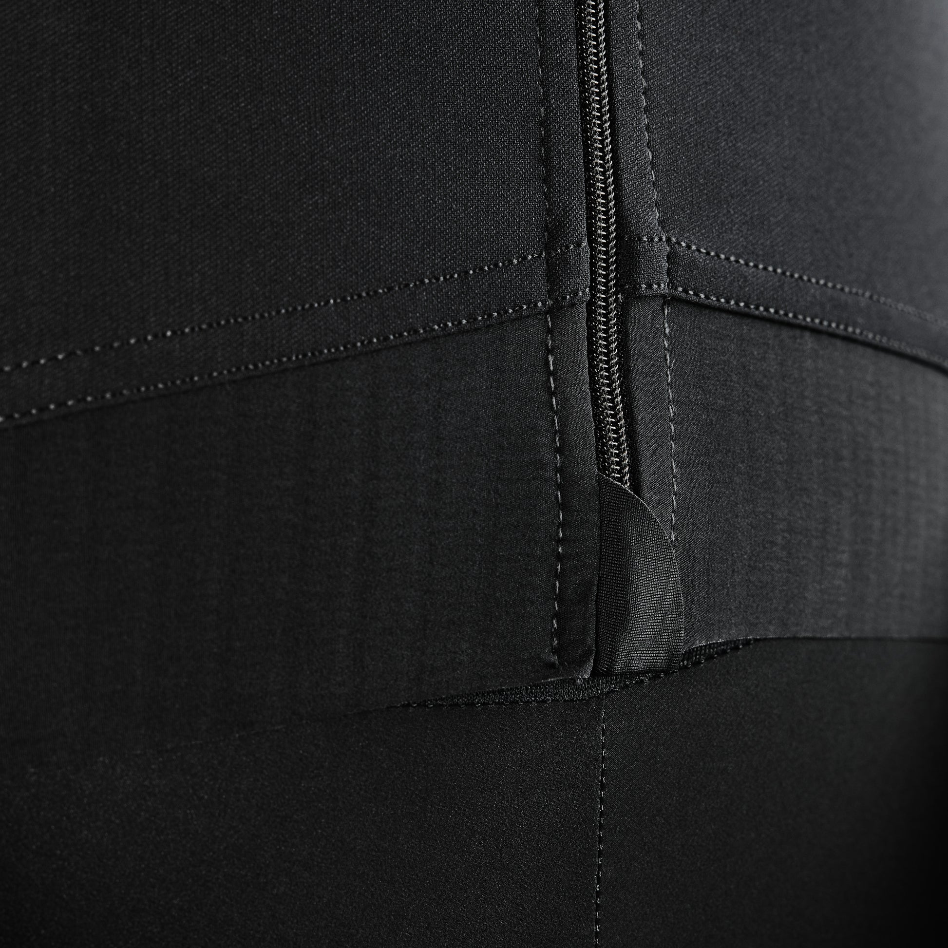 - Zipper garage at hem protects bibs